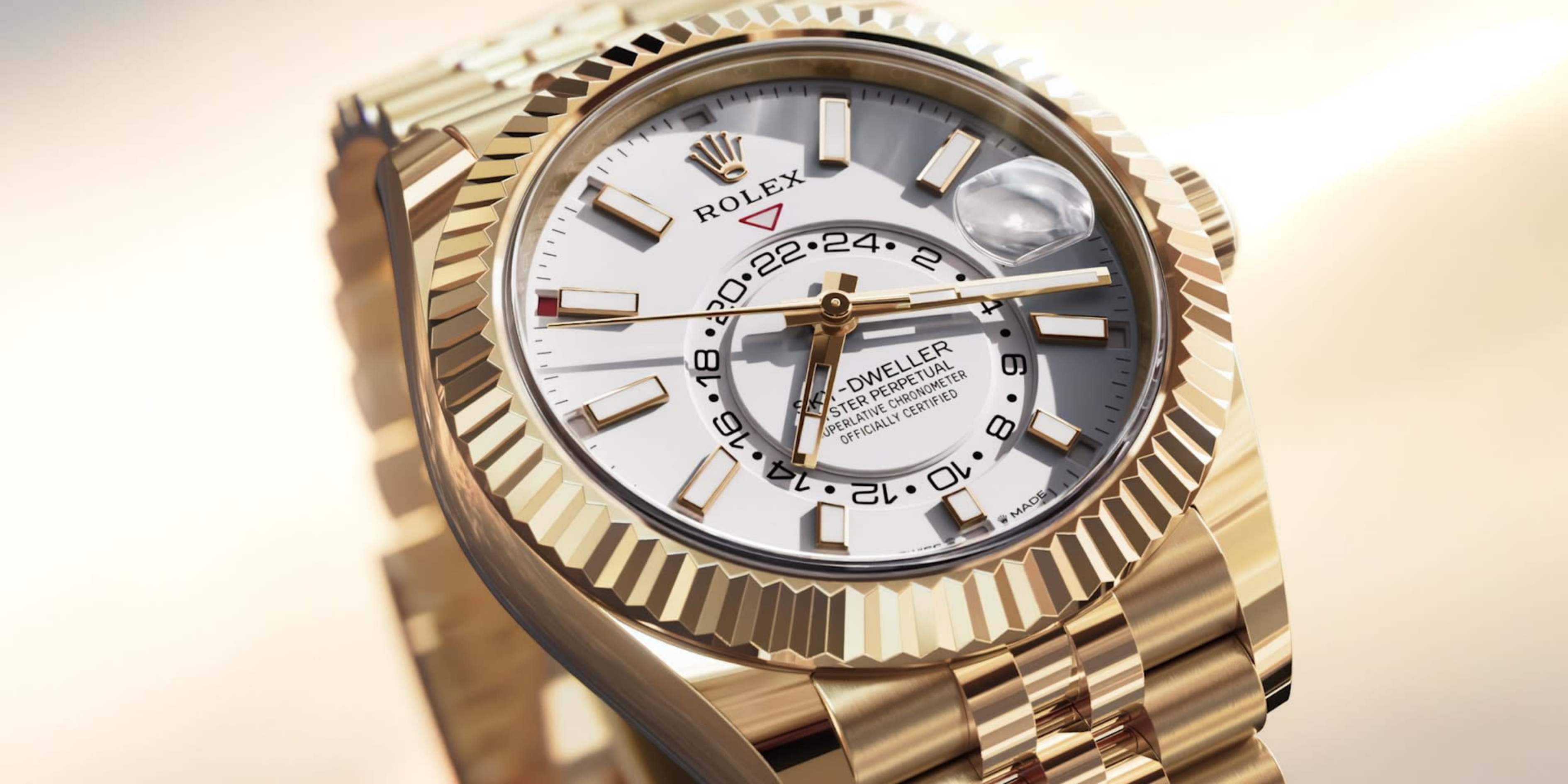 Rolex Yacht-Master II White Dial Blue Ceramic Bezel Gold Bracelet #4195